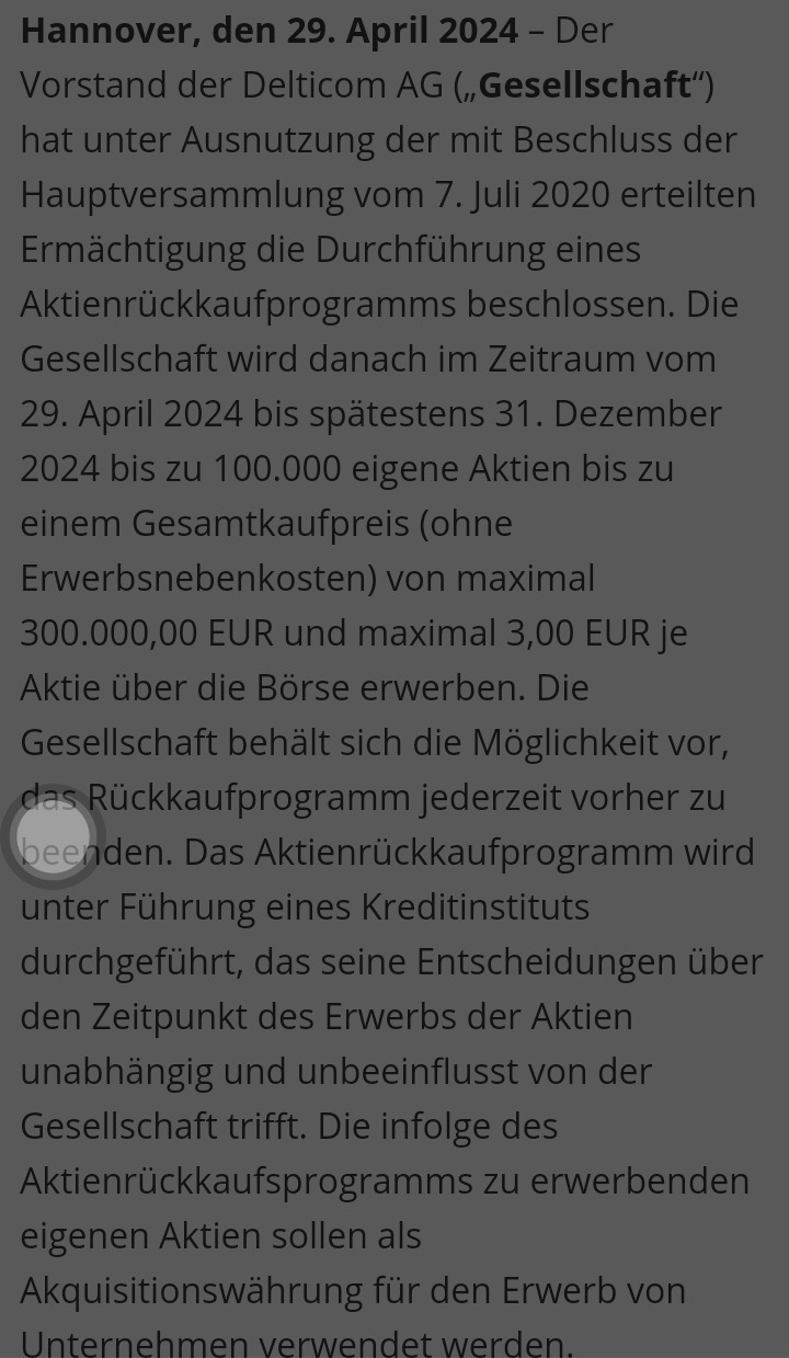 Immerhin hat Delti nicht den Fehler gemacht und das ARP bei über 3 Euro gestartet - können ja jetzt zulangen: https://www.delti.com/de/investor-relations/die-aktie/aktienrueckkauf/