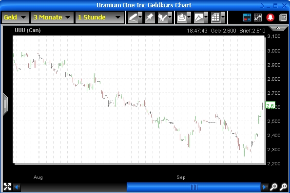 Die Beteiligungen an den Minen in Kasachstan arbeiten mit sehr geringen Kosten. Insofern wäre Uranium one ein Unternehmen mit glänzenden Aussichten. Wenn da nur nicht die wegen Unrentabilität stillgelegte und noch abzuschreibende Mine in Südafrika wäre. Irgendwann wird man die Hoffnung aufgeben müssen, daß die Uranpreise wieder auf über 12o $ steigen, um die Mine dann wieder in Betrieb nehmen zu können. Dann wird man um eine Abschreibung nicht mehr herumkommen.