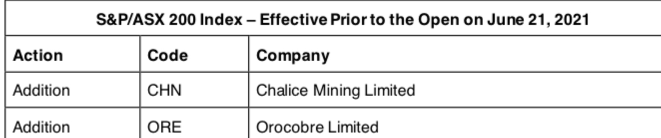 bekannt wird Orocobre ab 21.06.2021 in den S&P 200 Index der australischen Börse aufgenommen.