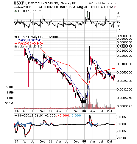 "I am subsequently informed that the technical automation and communication difficulties between the various stock quotation sites has confused and even aborted numerous Universal Express USXP and USXPE press releases over the past 30 days."
