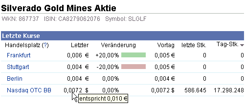 bei Nasdaq heute OTC BB 0,0050$ +11,11%
