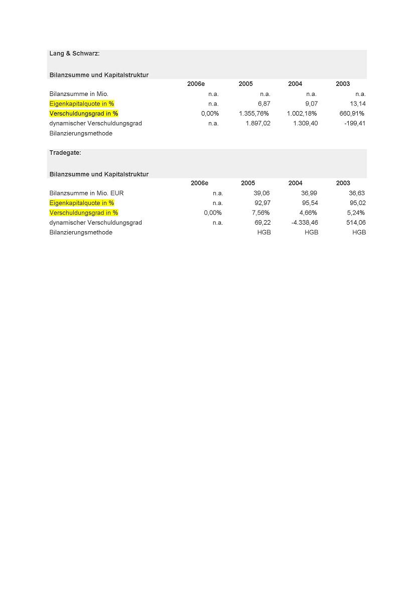 da lässt sich die erklärung für die relativ niedrige eigenkapitalquote und die verbindlichkeiten ablesen (seite 29ff.): allein die gehaltenen handelbestände haben sich innerhalb des jahres um über 40 mio erhöht. weil man eben ein höheres handelvolumen gerade im derivatemarkt abwickelt... das ist doch gerade das interessante - lang und schwarz hat gerade einen richtigen sprung gemacht von dem der markt noch gar nichts mitbekommen hat...