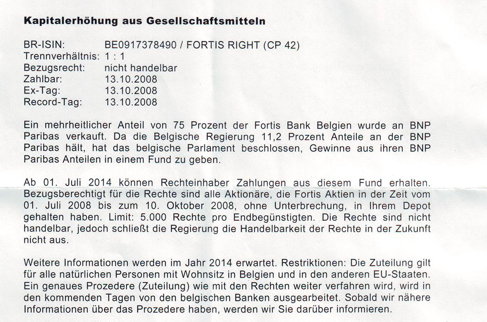 Am Besten gefällt mir aber die Aussage bezüglich der Fortis ANRs. Ab 2014 bin ich dann an den "Gewinnen" von BNP Paribas beteiligt.