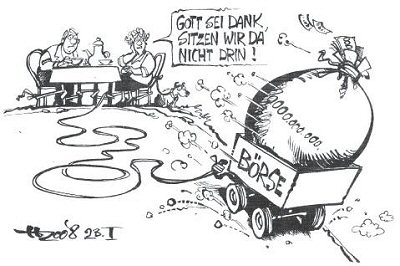 Man hätte auch im März 2003 die DB zu 38 Euro erstehen können. Leider war ich damals pleite und konnte nur 500 Euro in ein DAX Indexfonds stecken. Meinen letzten Groschen habe ich da rein gesteckt. Ist man in solchen Ausnahmesituation liquide und bringt den Mut auf, auch noch so zu handeln, ist man schnell der nächste Warren Buffet. Eine solche extreme Ausnahmesituation haben wir aber noch nicht erreicht. (oder vielleicht doch?) Noch kann man nicht von einem allgemeinen Crash reden. Solche Kursrückgänge sind noch (!) im Rahmen einer normalen bis stärkeren Korrektur.