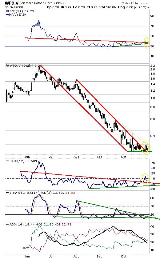 Western Potash konnte auch in FRANKFURT vor kurzem den mehrmonati­gen, dominanten­ roten Abwärtstr­end sowie die schwarze MOVING AVERAGE brechen und hat mit einem Ausbruch nach oben begonnen.