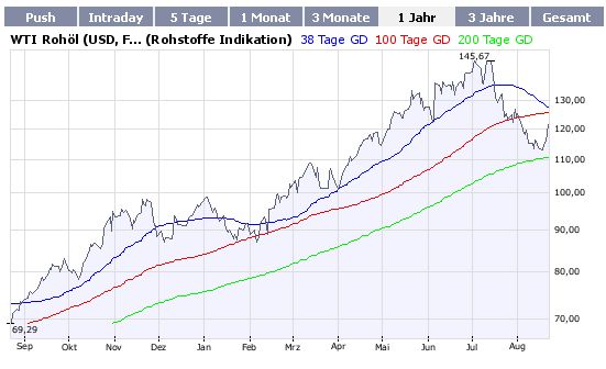 Öl hat seit 8Uhr ordentlich abgegeben, leider auch der Euro von 1,4422 auf 1,4208