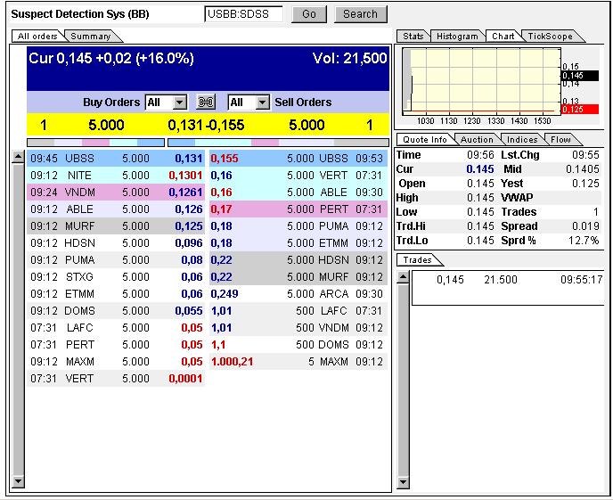 Das sell zu hoch limitiert und das buy zu niedrig, ist doch offensichtlich daß da kein trade zustandekommt oder zustande kommen soll. Ich habe meine 6k an einem Volumenreichen Tag für 0,1515 gekauft und konnte mein Limit so setzen wie es an dem Tag für einen vernünftigen Handel gut ausgesehen hat. Wenn ich Heute aus dem sell 5000 Aktien zu 0,145 gekauft hätte, wäre das ein ziemlicher Kurssprung gewesen ganz ohne Volumen. Die Leute die hier ihre shares ins bid und ask stellen haben doch nicht wirklich einen Handel vor. Die wollen den daraus entstehenden Werbeeffekt nutzen. Jeder redet über SDSS und wie viele shares hier gehandelt würden obwohl überhaupt nichts passiert. Der momentane Kurs ist auch aus einigen wenigen 1000 stück notiert. Da entsteht für mich die Frage warum verfährt man so bei den Leuten die das in der Hand haben, welches Interesse steht hinter diesen Kursen. Hier bei uns sehe ich aus der derzeitigen Entwicklung keinen Vorteil für SDSS. Was könnte da dahinter stecken, vielleicht Verzögerungstaktik? muenther?