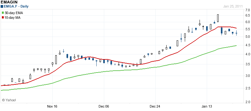 Gerüchte, dass die Technologie von Emagin künftig bei Produkten von Sony eingesetzt würde, sollten den Kurs weiter treiben.....sofern sie sich bestätigen.
