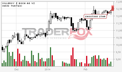 Erstens, da Villeroy und Boch keinerlei Rabatt auf ihre hohe Kartellstrafe erreichten. Ein Rabatt hätte den Kursanstieg "untermauern" können.