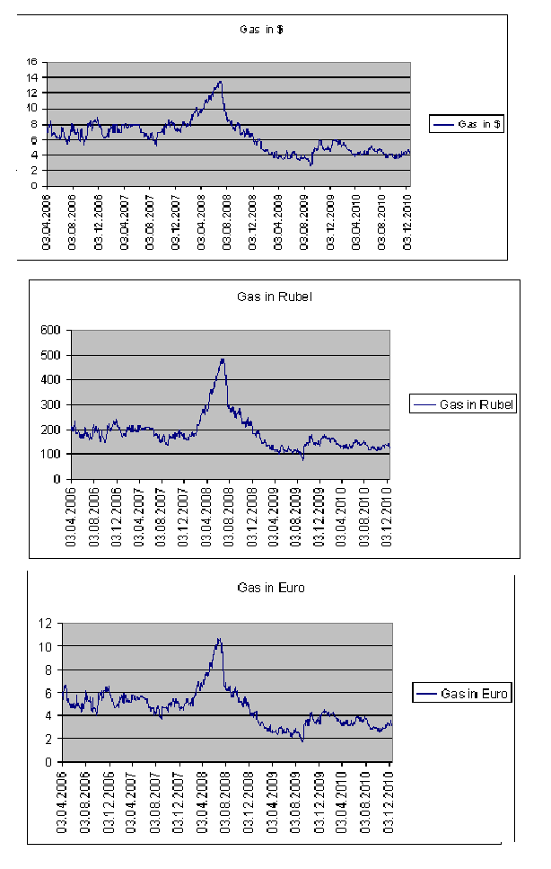 In Rußland ist die Inflation vielleicht­ höher dafür gibts auch mehr Zinsen auf dem Konto, den Rest richtet der Wechselkur­s,hier ab ich mal den Gaspreis in verschiede­nen Währungen.­