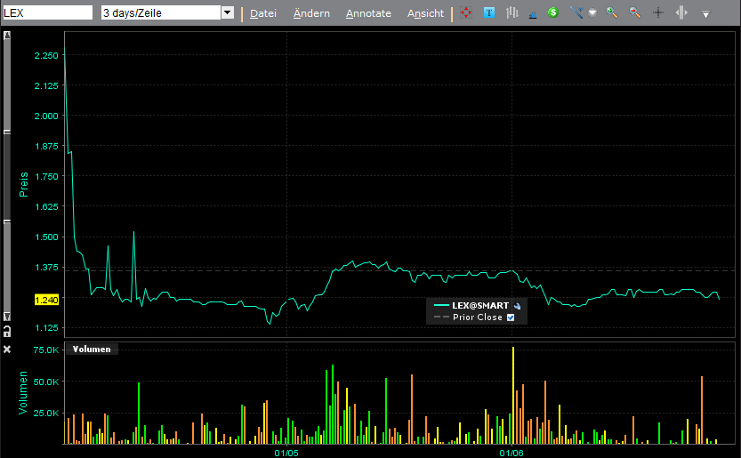 Im Vergleich zu den extrem starken Kursanstiegen bei WTG in den wenigen Tagen seit Handelsbeginn hat sich der LEX Kurs doch kaum bewegt