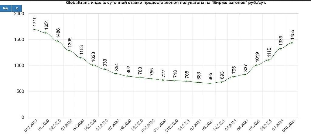 „Im Gondelwagen-Segment nähern sich die Mietpreise der Marke von RUB 1.500 pro Tag. pro Beförderung im Rahmen zuvor abgeschlossener Verträge und der Mietpreis auf dem Spotmarkt beträgt 2.500–3.000 Rubel pro Tag. Die Spotpreise übersteigen bereits das Niveau von 2018–2019, als es an Waggons mangelte, der Transport wuchs und die Kohlepreise (nach diesen Standards) hoch waren “, sagen Experten.