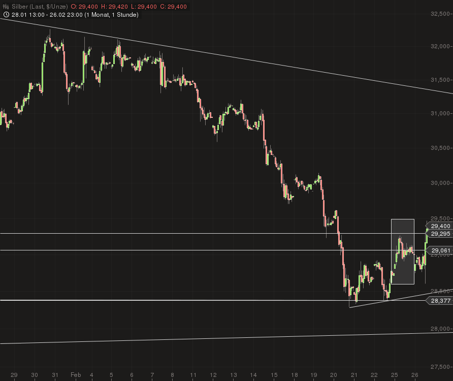silber-chart-thread ist .......ich erachte das comeback als bemerkenswert ( chart 1woche im 1stundenchart ) - und : ob bersani oder berlusconi, sie haben es egal wie die ergebnisse liefen , beide nicht geschaftt, den silberkurs unter die unterstützung von 28,26 zu drücken.