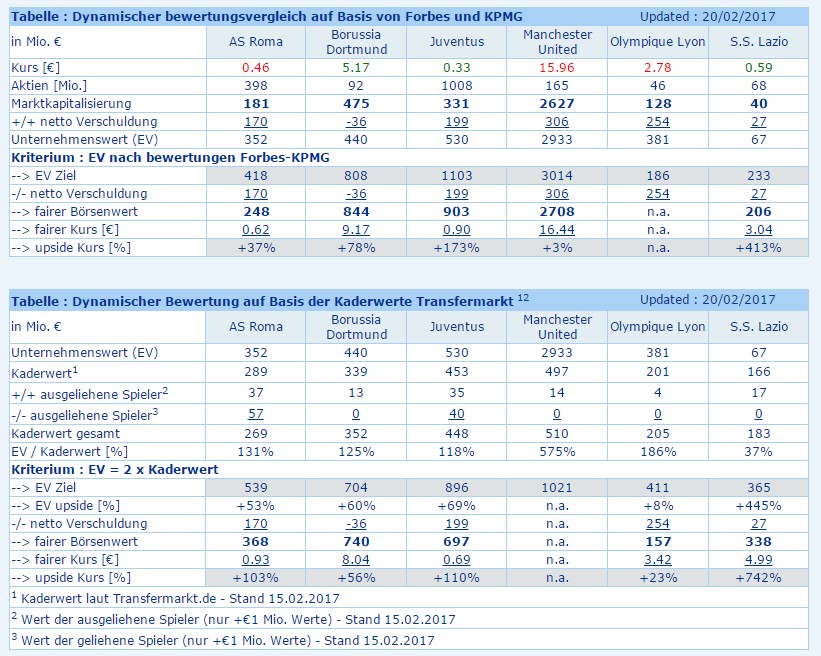Ähnliches erwarte ich übriges auch bald bei Roma und Lazio wo meiner Überzeugun­g nach die jeweiligen­ Großaktion­äre genau so vorgehen wie EXOR bei Juventus. Auch da hat mein so lange man nicht komplett Eigentümer­ ist Interesse an ein dreckiger Bewertung der Aktie.. was auch daran ab zu leiten ist dass  die IR-Abteilu­ngen de facto als ein kompletter­ Fake funktionie­ren.