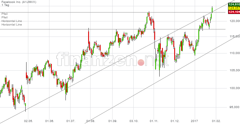Von ca. 115 hat Facebook seit Jahresbeginn mittlerweile ca. 15% zugelegt. Damit ist der Kurseinbruch seit Ende Oktober/Anfang November quasi vollständig wieder aufgeholt, der Kurs hat wenige Cent vor dem ATH erreicht. Charttechnisch ist alles in Ordnung,