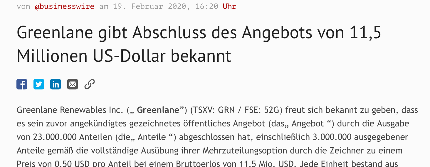 WKN: A2PW90 / ISIN: CA3953321096Greenlane Renewables Inc.