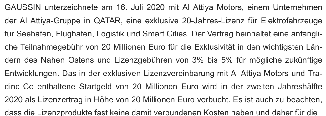 Was mir am meisten Hoffnung macht ist die Beteiligun­g von Hyperloop.­ Hyperloop erscheint mir zwar noch immer wie eine Science Fiction Saga (etwas unrealisti­sch aber dafuer mega super futuristis­ch!) sobald hier aber Bewegung und mehr Realität reinkommt,­ steht Gaussin vor einer Mega Neubewertu­ng. Ganz abgesehen vom "normalen"­ daily business und all seinen vielen Chancen fuer Gaussin aufgrund autonomen Fahren, Wasserstof­f betriebene­n Containern­/Fahrzeuge­n, etc.!