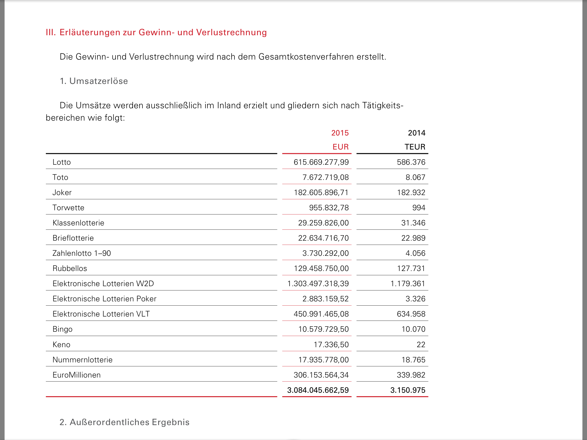 Umsatz Nur das LOTTO: Klassisches : 615 Mio€, online Lotto: 1,3 Mrd€