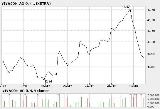 "Die Meinungen gingen beim weiteren Kurspotenzial weit auseinander. Während Metehan Sen von Sal. Oppenheim Vivacon als "Aktie in einem Wachstumsmarkt" betrachte, sehe Peter-Thilo Hasler, Analyst der HypoVereinsbank, das Kursziel von 30 bis 32 Euro als erreicht und das Papier als fair bewertet an (2006er KGV von 16). Investoren sollten sich das Risiko starker Kursausschläge vor Augen führen und bestehende Positionen mit einem Stop-loss bei 24,50 Euro absichern."