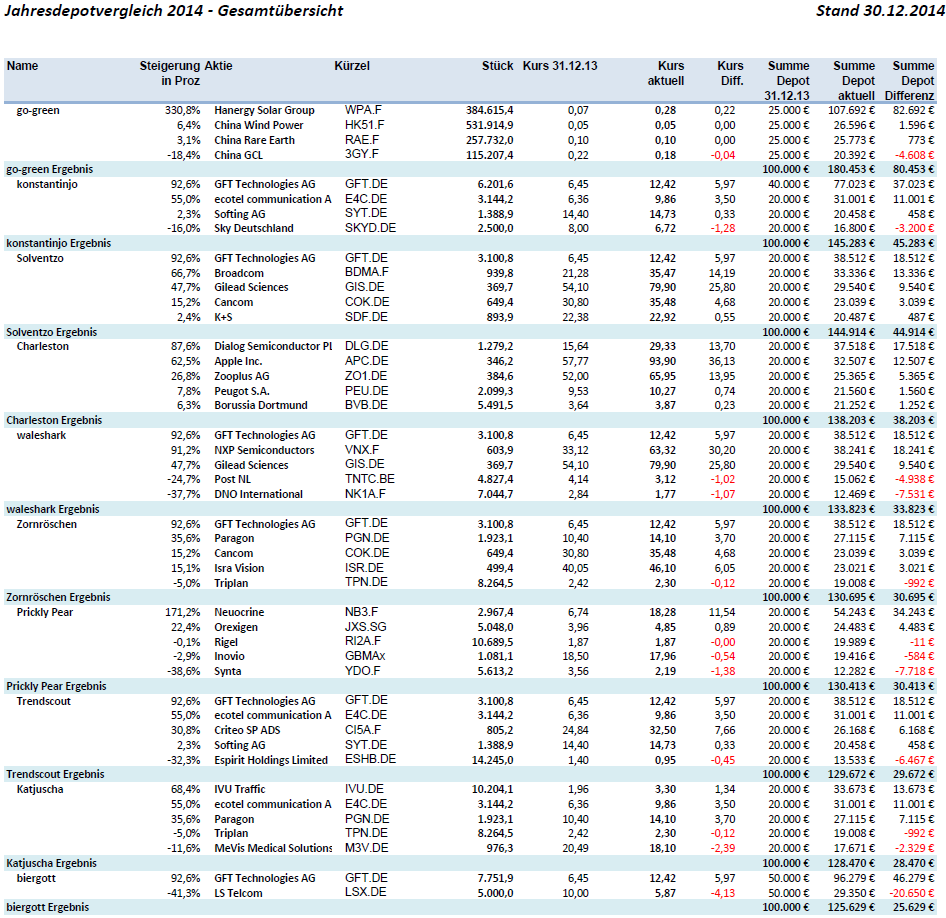 Aktiendepotvergleich 2014 - Startthread