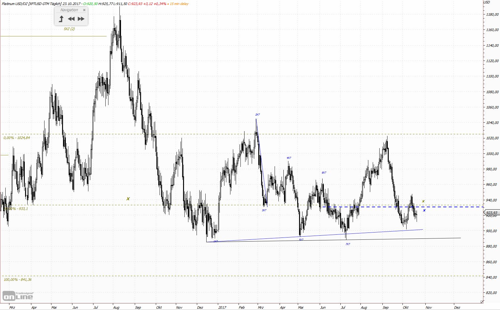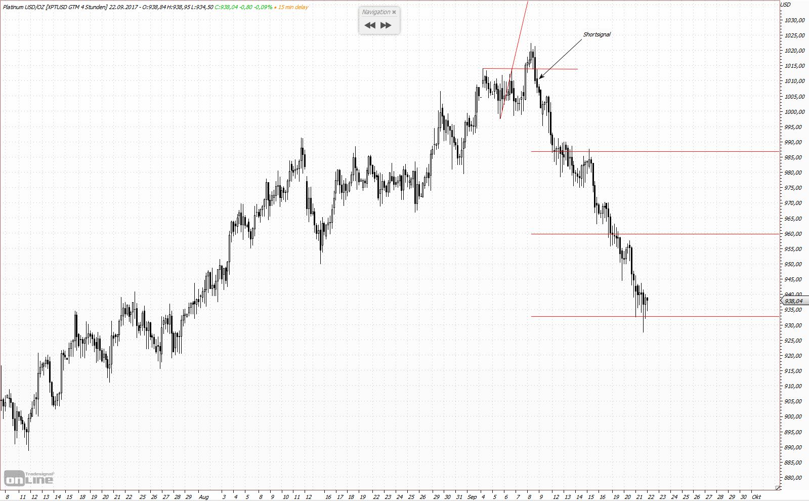 was haltet Ihr davon Platin kurzfristig zu shorten? Denke es wird noch auf knapp 900,00 fallen bevor es sich wieder erholt. Ab da würde ich long gehen bis Ende November