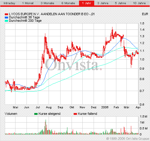 nach knapp der Hälfte meiner Beschäftigung mit Lycos Europe, also so ca. ab November 2005, sagte ich ja, LE wird sicher gesteuert, aber mit dem Zusatz 'LE wird nach charttechnischen Gesetzen' gesteuert