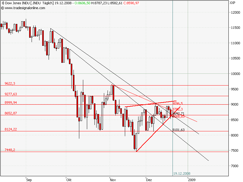 Wenn Daytrading, dann immer nur kleine Summen setzen, niemals All-In. Wartet ab, bis die Sideline verlassen wird. Ein neuer Trend wird sich spätestens ab Januar bilden. Vom Gefühl würd' ich sagen: Autobauer endlich geklärt, also runter ;)