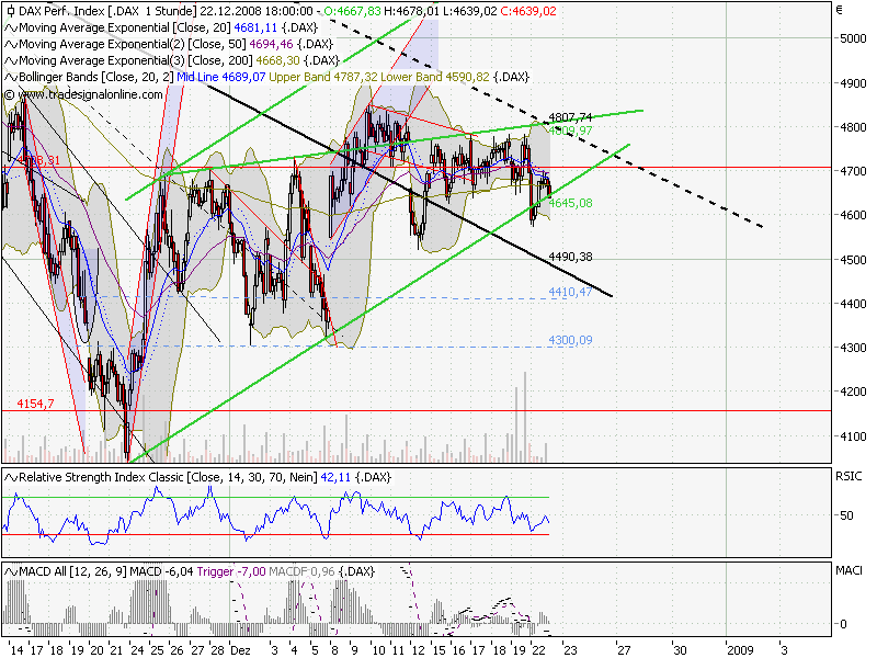 Ich sehe einen bearishen Keil. Heute wurde er bereits zwei Mal an der Unterkante durchbrochen. Zu Weihnachten darf man sich ja etwas wünschen. Da ich immernoch einen Put OS auf den Dax habe und leider mal wieder im Minus bin, wünsche ich mir den Dax auf 4200 und weniger. Naja, ziemlich egoistisch, aber man kann ja nicht immer nur an andere denken ;-)