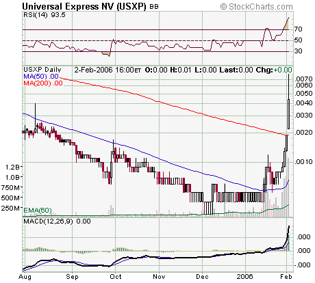 wird wohl heute noch Universal Express werden. Nach den Rücksetzer vorige Woche haben die Amis am Freitag 40 Prozent plus gemacht und auf höchst geschlossen. Werden wohl heute wieder den Aufwärtstrend weitermachen und richtung 1 Cent steuern.