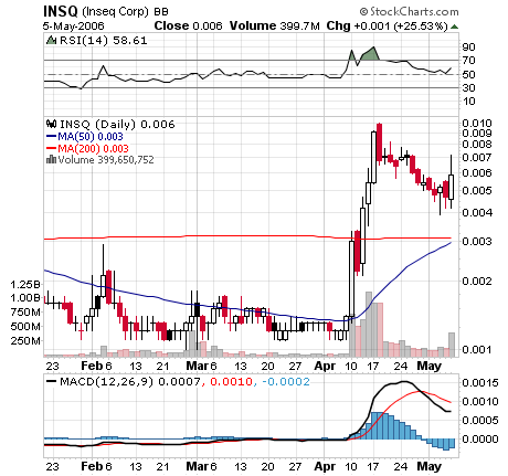 INSEQ verkündete auch seine Absicht, eine Ausrichtung Aussage auf Form S8 für 600.000.000 allgemeine Anteile für Austeilung unter INSEQs 2006 heute einzuordnen der auf lager und Aktienoptionsplan.