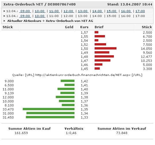 Die 50 günstigsten deutschen Aktien NET AG (WKN 796740 ) 2007