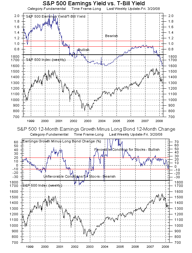 Bottom Line: The earnings picture is abysmal, and there is a solid long-term sell signal in progress. Playing the long side looks promising, but keep a tight reign on long positions because we are in a bear market until proven otherwise. Remember: "Bear market rules apply! The odds are that support levels will be violated, and, if against those odds the market manages to rally off support, odds are that the rally will fail before it can change the long-term trend."