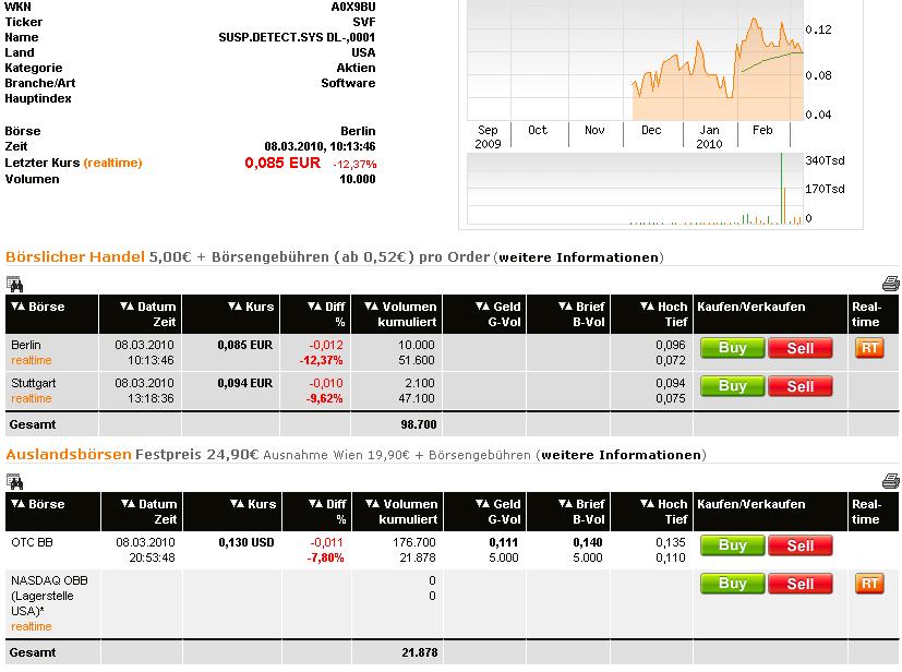 "With regard to the recent stock activity, we are not too concerned. The stock has been trading at low volume, and has been rising and falling the way most stocks do at this stage. We believe that the price should pick up significantly in 2010, and we look forward to the eventual possibility of taking SDSS to a more established exchange." (Zitat Alex Traiman, Public Relations SDSS, 03.03.2010).