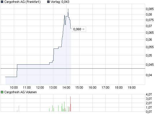 Ich bin wirklich verwundert. Was man in Zockerkreisen so hört, scheint der Drops bei der Cargofresh noch nicht gelutscht. Im Gegensatz zu den Klitschen, die schon seit vielen Jahren weg vom Fenster sind, ist hier noch mit Ad-Hocs (und damit verbunden positiven News) zu rechnen!