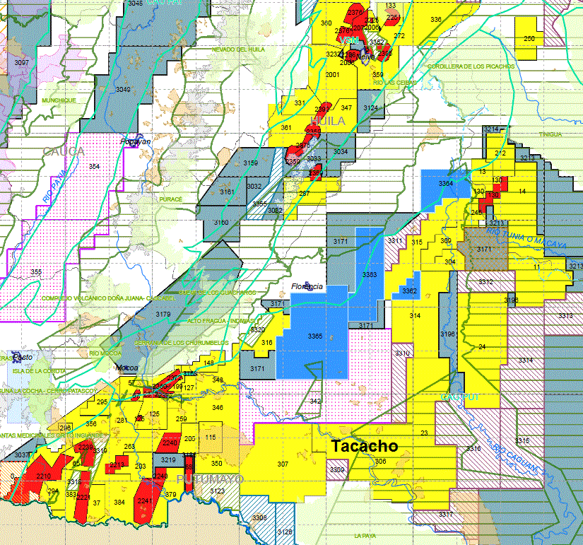 Allerdings ist Tacacho noch in einem frühen Stadium der Exploration. Während bei CPO-5 im Llanos-Basin ringsherum bereits produzierende Felder sind, liegt Tacacho im Caguan-Putumayo Basin ca. 100 km weit östlich der produzierenden Felder dieses Basins (s. Land-Map der ANH, hier Mitte rechts: http://www.anh.gov.co/es/index.php?id=1 ).