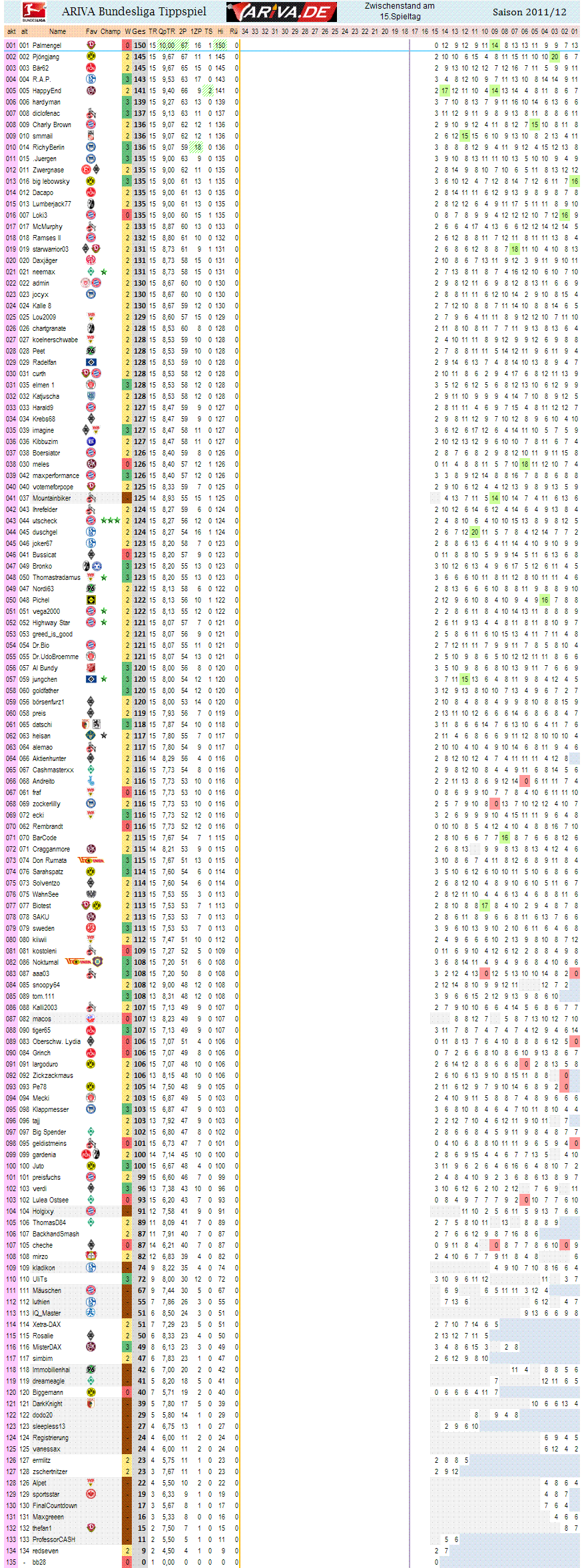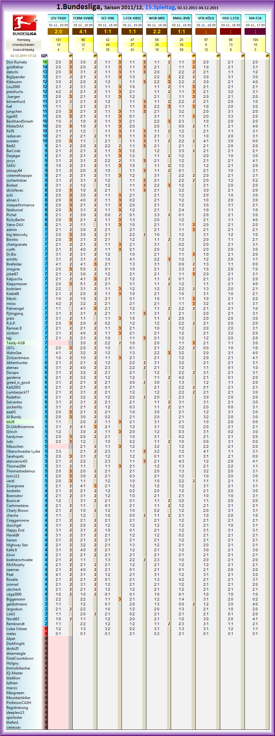 1.Bundesliga, Spieltag 15
