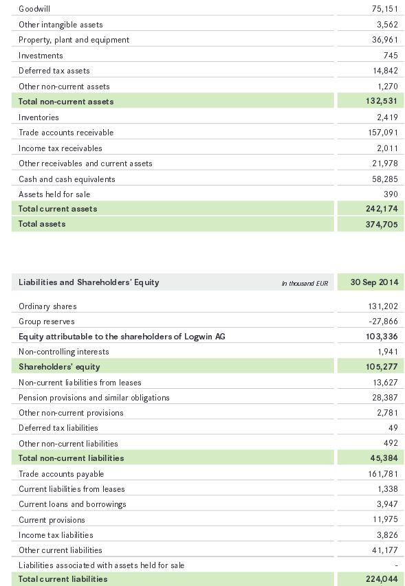 verfügte über 30.09. über eine Nettoliquidität von ca. 40 Mio., die mit Ende 2014 auf 55 bis 70 Mio. gewachsen sein sollte. Das heißt um diesen Betrag besitzt Logwin mehr Finanzvermögen als Finanzverbindlichkeiten.