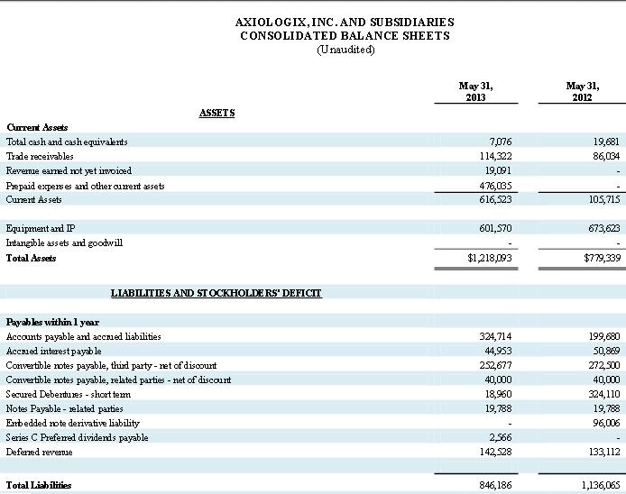 Wed, Sep 11, 2013 12:00 - Axiologix, Inc. (AXLX: OTC Pink Current) - Tier Change - The symbol, AXLX, no longer is classified as OTC Pink No Information. As of Wed, Sep 11, 2013, AXLX resides in the OTC Pink Current tier. You may find a complete list of tier changes at otcmarkets.com.