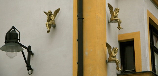 Die kleinen "goldenen Engel" von Ottmar Hörl sind durch die Initiative einer Galeristin an vielen Hausfassaden der schönen Innenstadt von Ingolstadt angebracht.