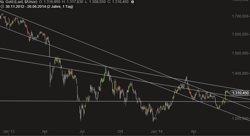 Im Chart in #125 sind mehrere grüne Pfeile eingezeichnet. Alles starke Impulse nach oben, die in Bälde darauf wieder in die andere Richtung wanderten. Jedesmal konnte man von Preisen, die auf die 1.500$ zielten, lesen. Damit meine ich, Analysen geben Klarheit über das Wesen des Goldpreises. Sein Potential, die starke Volatilität und machtvolle Preisbewegungen, von Zeit zu Zeit. Aber in der derzeitigen Lage, in der der Preis sich von den REIN! spekulativen Höchstpreisen um die 1.920$ und ein Jahr später noch einmal 1.794$ zurückgezogen hat, und sich nun in einem moderaten Mittelfeld um die 1.300 $ bewegt, ist es einfach sehr schwer, übergeordnet eine Richtung festzuzurren. Da helfen alle Analysen nichts :-)