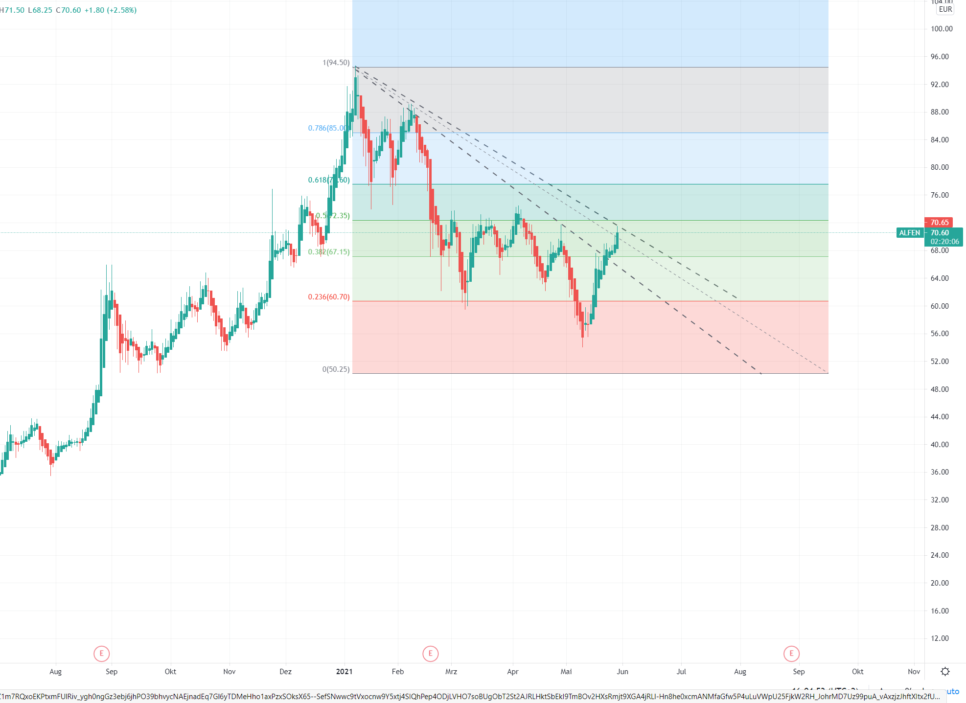 dann würde ich paar Gewinne auch mitnehmen. Ich nehme Gewinne erst bei 100% von Tisch wenn der Kurs etwas heiß gelaufen ist. Aber bei Alfen würde ich behaupten, da kann noch was kommen.