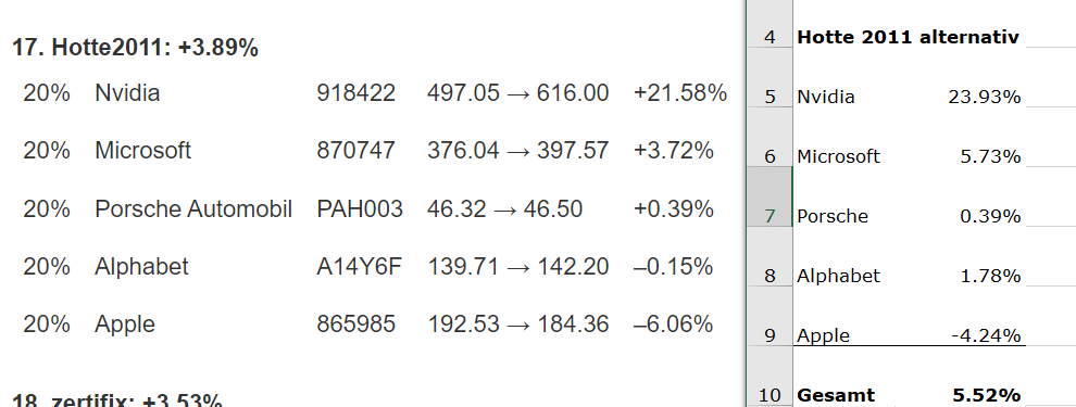 | 20% | GFT Technologies | 580060 | 31.20 → 27.00 | –13.46% |
