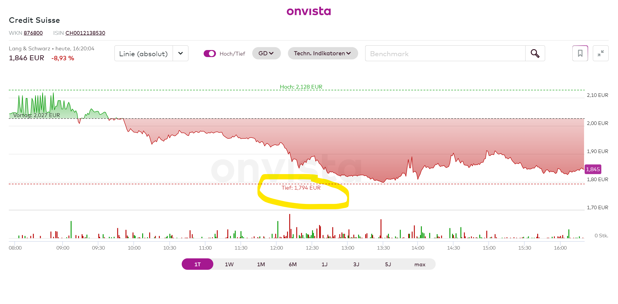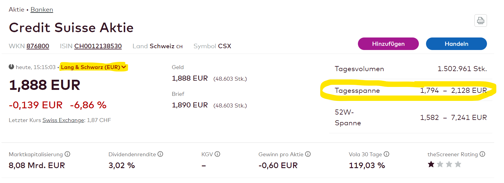 So glatt gestellt und jetzt die Tradingbücher zu. Mache hier jetzt erstmal Schluss. Mal sehen was das CFO Treffen am Wochenende als Szenario für die Credit Suisse entscheidet.