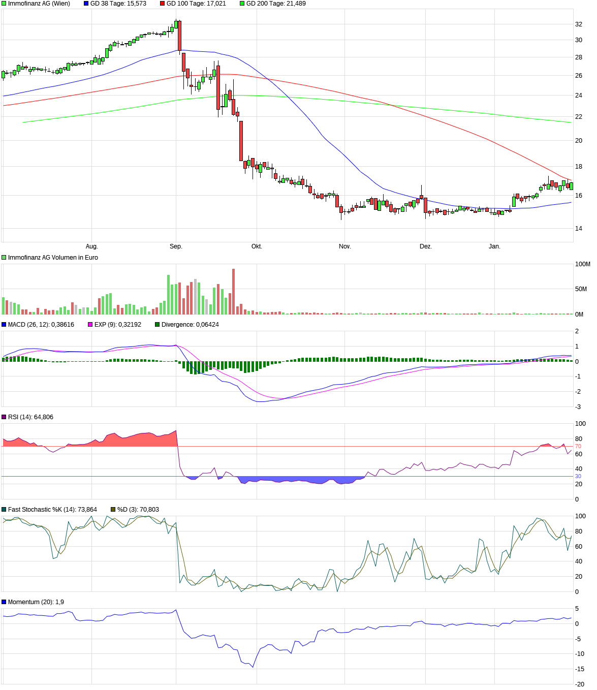 Charttechnisch die nächste Hürde ist die 100-Tagelinie, die bei 17 Euro verläuft. Die 200-Tagelinie verläuft bei ca. 21,50 Euro. Derzeit bildet sich eine "Untertasse" aus.