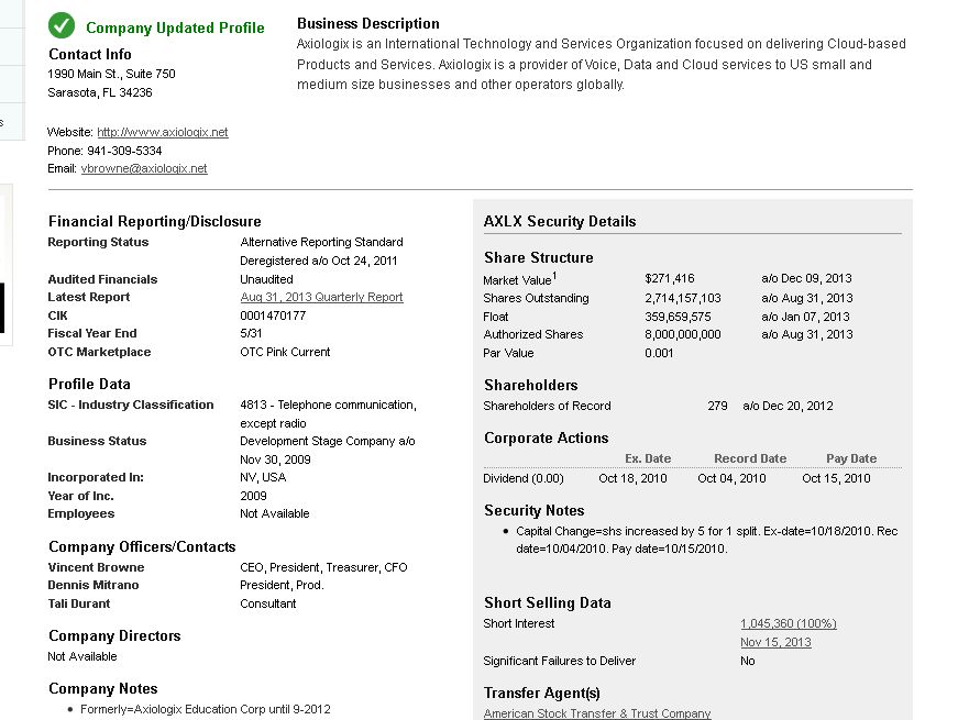 http://www.otcmarkets.com/stock/AXLX/company-info