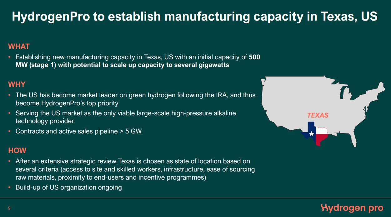 Eben kam eine News von Hypro per E-Mail, in Texas kommt eine 500 MW Produktionsstätte...