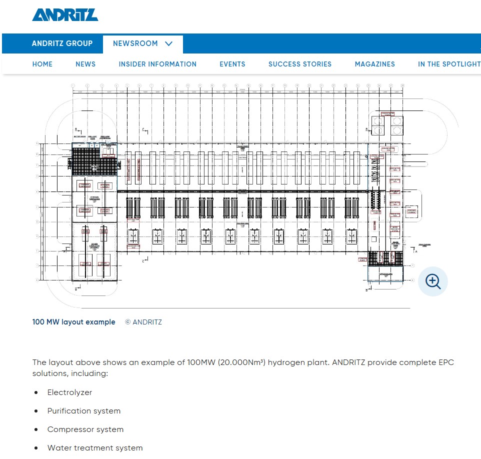 100MW H2 Productions Anlagen von Andritz sind bereits auf der Homepage:
