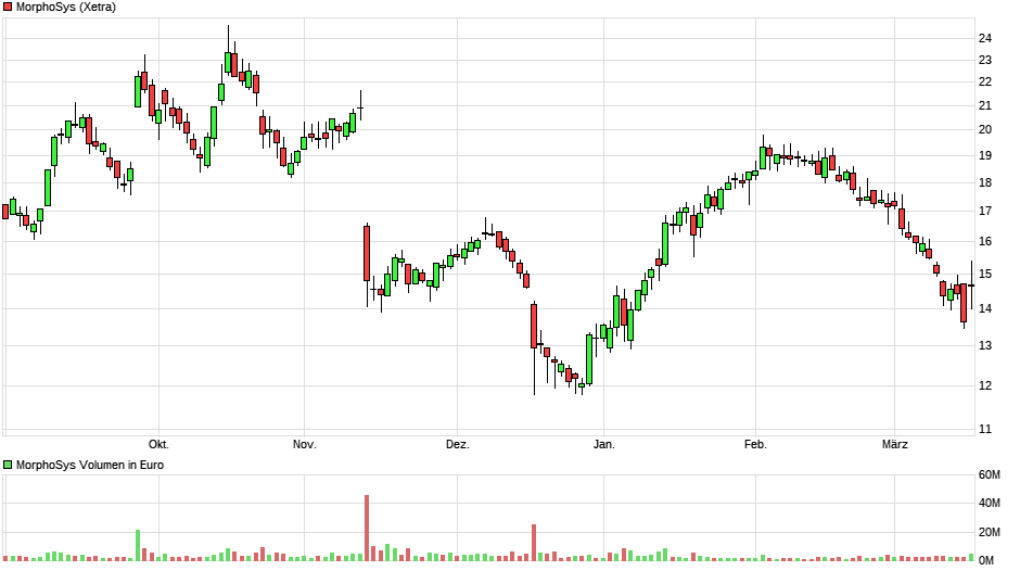 Ich hab mir gerade mal den langfristigen Chart von MOR angesehen - bei 12 Euro (Tiefs Sept. 2007) gibt es charttechnisch eine gute Chance, dass der Kurs vielleicht zu einer Gegenreaktion ansetzt.