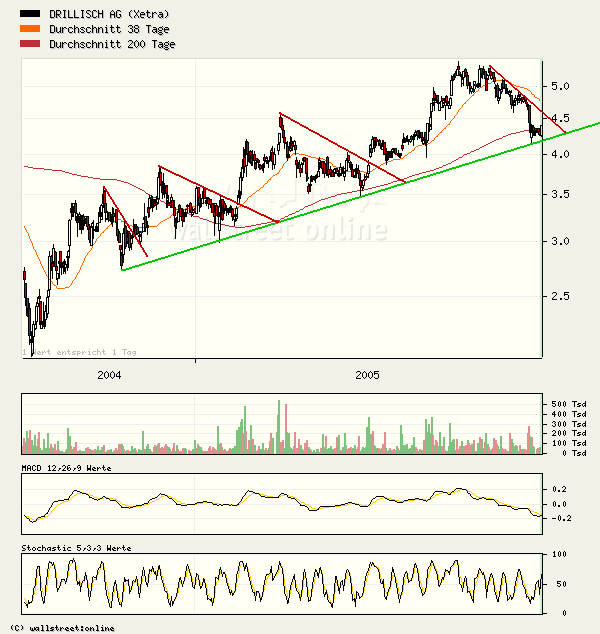 Ich hab ürbigens seit dem Unterschreiten der 200-Tage-Linie vor einer Woche auch einen Call auf DRI, nur mit Basis 5,0 anstatt 5,5. Aber ein 5,5er würde sich natürlich enorm hebeln, wenn DRI diese magische Grenze im Chart überwindet, was bei Übernahme oder TecDax-Aufnahme gut möglich wäre.