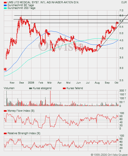 Sind aber immerhin 12% meines Depotwerts. Bin halt auch Kleinanleger. Das du 500 verkauft hast, ist doch okay. Ich hab ja UMS auch aus dem Ariva-Depotwettbewerb kurzfristig rausgenommen, aber wie man sieht geht die Aktie trotzdem weiter rauf. Vielleicht komme ich nicht mehr zu 5,01 rein. Wichtig ist meine mittelfristige Meinung. UMS wird 2007 m.E. auf 9 € laufen, und deswegen bleiben auch alle 800 Stück in meinem realen Depot.